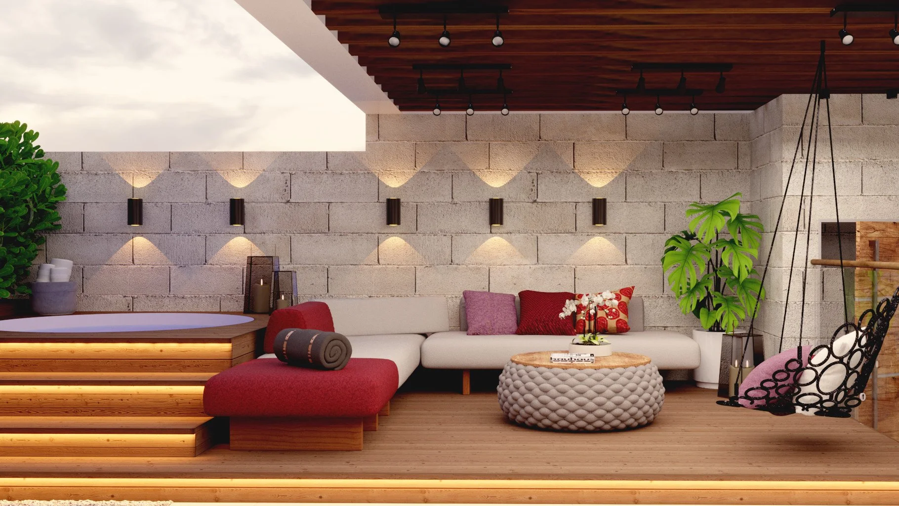 Color Terrace is a penthouse terrace renovation project in Brazil, designed to create a serene urban oasis. The semi-covered outdoor space features vibrant accessories, abundant greenery, and a wooden pergola with glass enclosure that balances light and shade. This modern outdoor living area seamlessly connects nature with comfort, offering an inviting environment for entertaining friends and family.